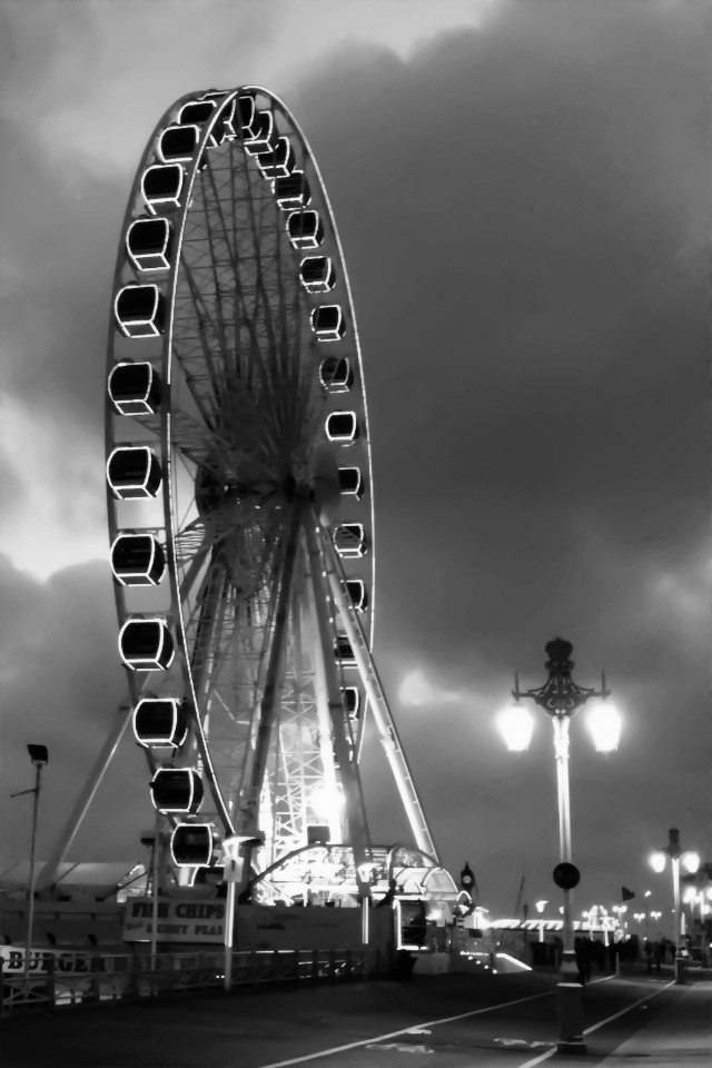 Taken this weekend in Brighton, the sun was almost set, the winds were freezing and yet I couldn’t resist this scene! Night lights of the wheel and pier.