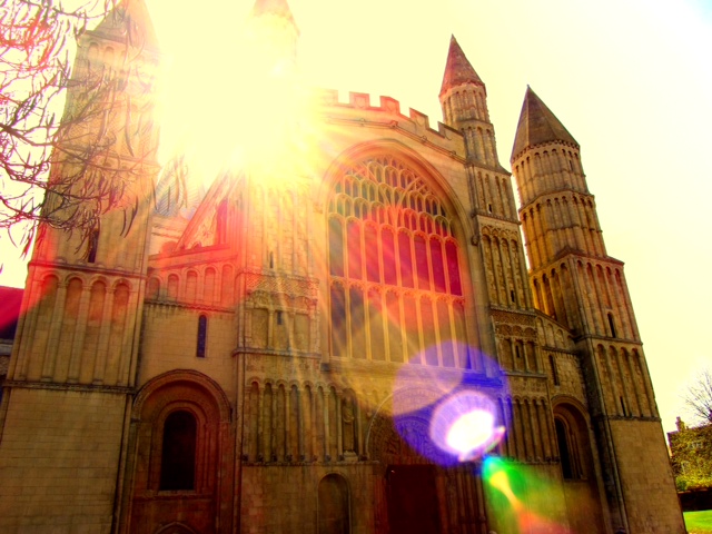 Rochester Cathedral, taken in bright sun with a deliberate lens flare, barely edited, just a few filters.